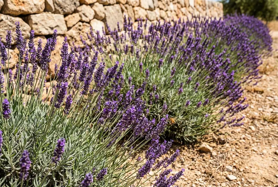 Por qué en Madrid: Aman el suelo calizo y el drenaje rápido. Son la definición de «plantar y olvidar». Combínala con Santolina para un contraste gris-plateado