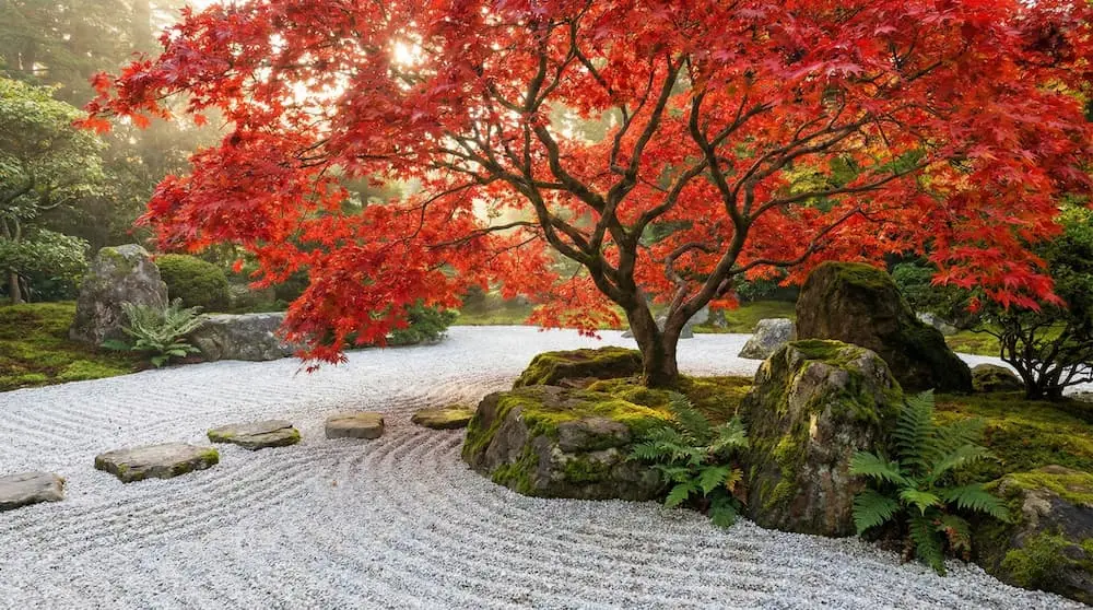 No hay jardín oriental sin un Acer palmatum. Son la poesía visual del otoño.