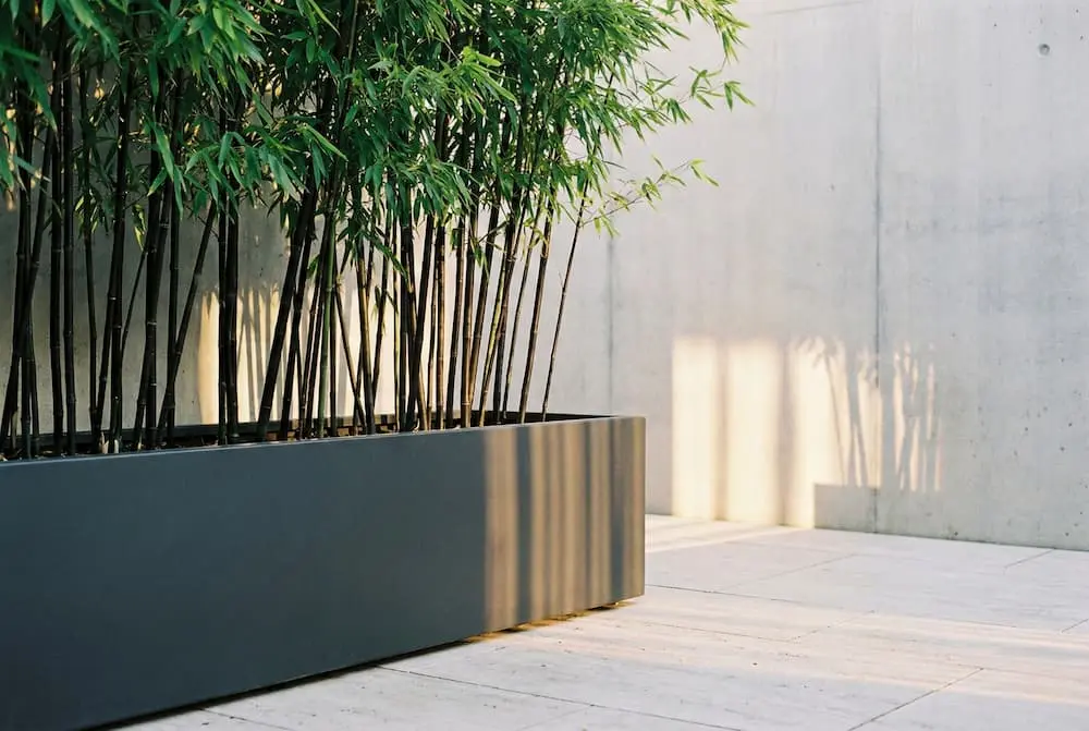 • La opción de diseño: El Bambú Negro (Phyllostachys nigra) en una maceta de diseño es la elegancia absoluta.