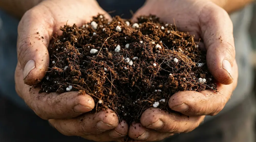 - La Solución Premium: La Perlita. Esas «piedritas blancas» (vidrio volcánico) crean poros de aire en la mezcla, permitiendo que las raíces respiren y colonicen la maceta en tiempo récord.