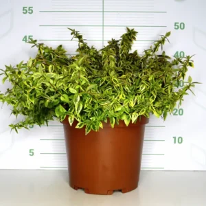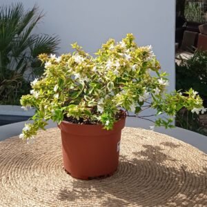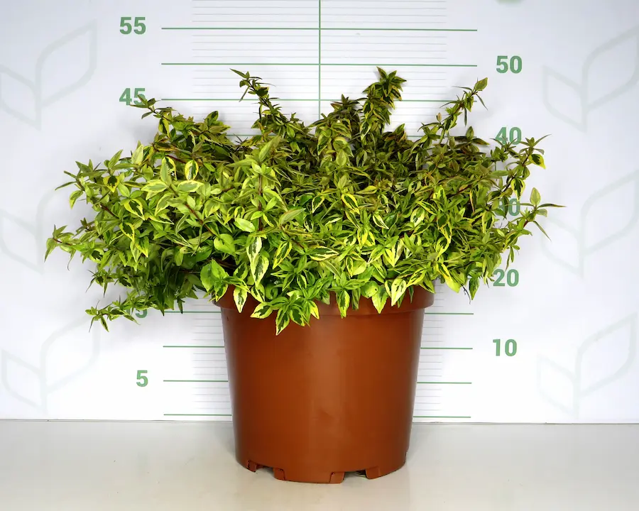 La Abelia x grandiflora ‘Kaleidoscope’ es uno de los arbustos más espectaculares y dinámicos que puedes tener. Su nombre, «Caleidoscopio», describe a la perfección su principal virtud: un follaje perenne y brillante que está en una constante y fascinante transformación de color a lo largo de las estaciones. Si a esto le sumamos una abundante floración durante todo el verano, una gran resistencia y un porte compacto, obtenemos la planta ideal para macetas, borduras y jardines de bajo mantenimiento.