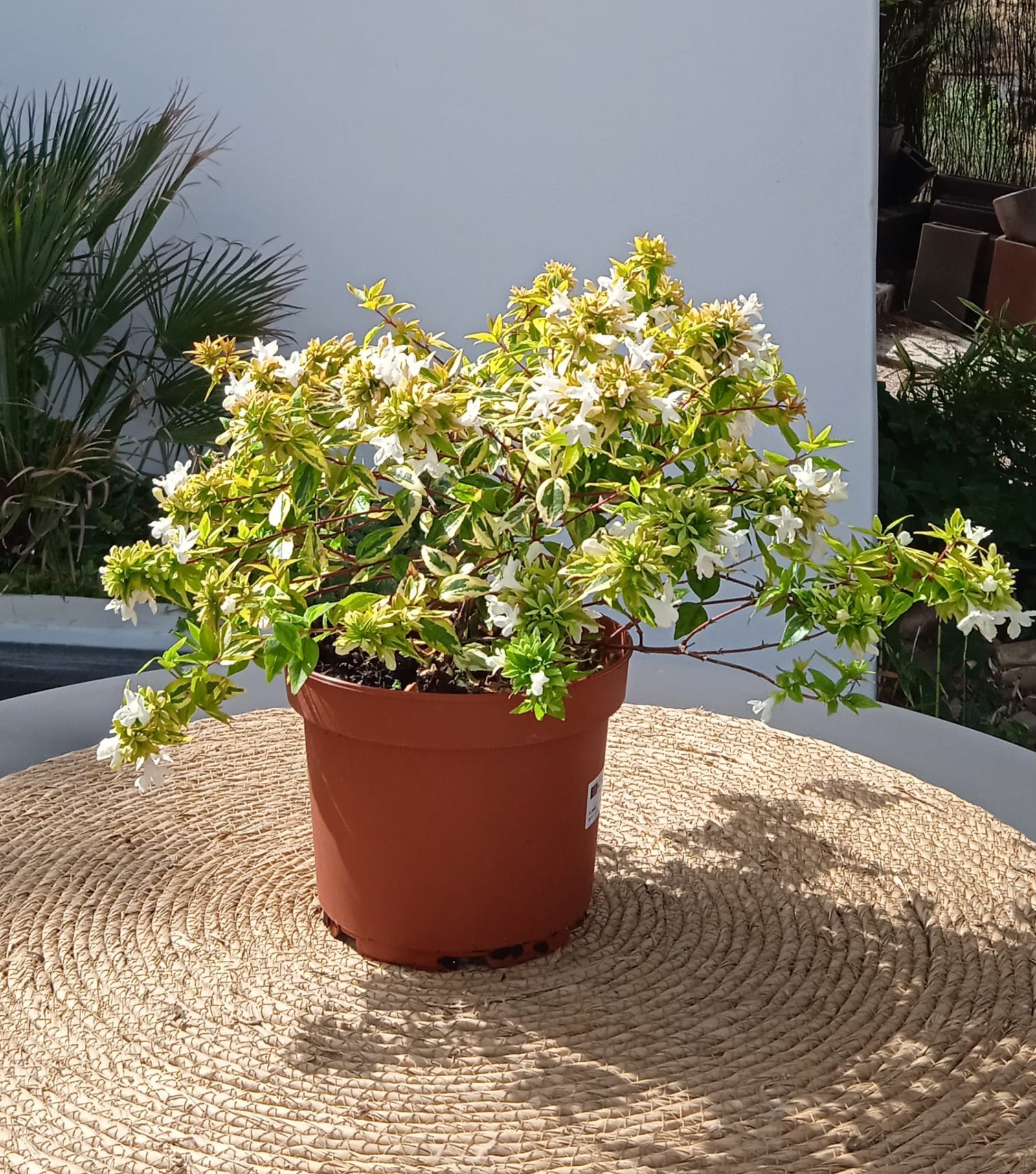 La Abelia ‘Kaleidoscope’ es una de mis plantas favoritas, un auténtico «showtopper». Es una de las pocas que te da un follaje de color espectacular Y una floración abundante y duradera. Su transformación de color en otoño es increíble, parece que la planta arde. La recomiendo sin dudar para cultivar en macetas en una terraza soleada, donde su porte compacto y su ciclo de color se pueden apreciar al máximo. Es la definición de «máximo impacto, mínimo esfuerzo».