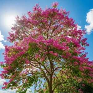 El Árbol de Júpiter es, sin duda, mi recomendación número uno para quien busca un árbol de flor para el verano en Madrid. Su amor por el sol y el calor lo hace infalible en nuestro clima. Mucha gente se olvida de su espectacular corteza y su color de otoño, que lo convierten en una planta de interés para todo el año. La poda de invierno es clave: no hay que tener miedo, cuanto más se poda, con más fuerza florece. Es una de las mayores alegrías del jardín estival.