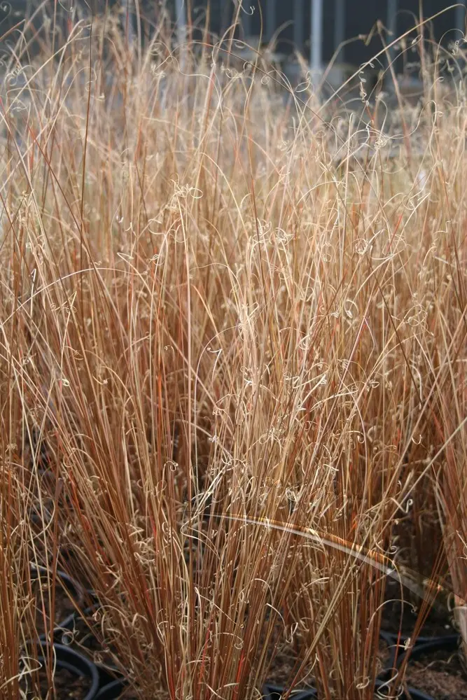 Su segunda gran virtud es su textura. El follaje es tan fino que parece un cabello, formando una mata densa y estrictamente vertical que se arquea con una gracia exquisita solo en las puntas. Esta silueta, similar a la de un jarrón o una fuente, combinada con su color extraordinario, la convierte en una pieza de acento de primer orden para jardines contemporáneos, minimalistas o de inspiración naturalista. Es la elección perfecta para aportar una textura etérea y un color cálido e inesperado.