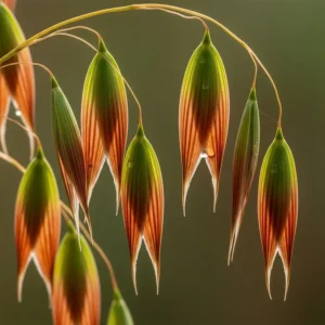 Las inflorescencias son su rasgo más distintivo. Su forma, similar a la de las espigas de avena pero aplanadas, y su manera de colgar de los tallos, le confieren un aspecto muy ornamental y único. Son excelentes para cortar y usar en arreglos florales, tanto frescos como secos.