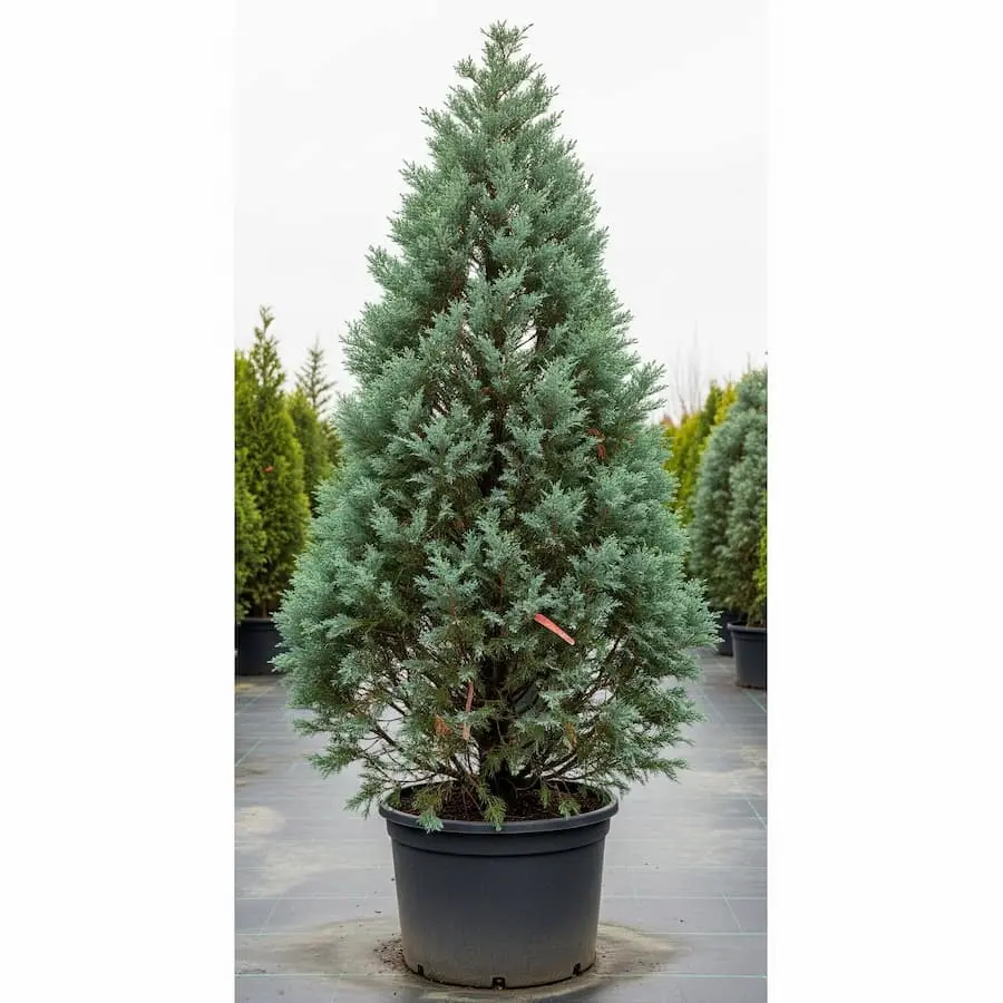 Su denso follaje y su crecimiento columnar crean una pantalla de privacidad formidable. El color azulado de sus hojas genera un contraste espectacular con el césped, otras plantas o la arquitectura de la vivienda, aportando profundidad y diseño al conjunto.