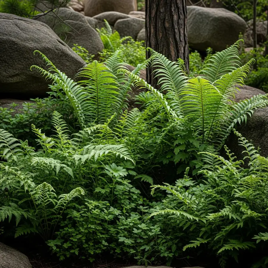 Los helechos son el alma del jardín de sombra. Con sus frondas arqueadas, su frondosidad exuberante y su aspecto prehistórico, tienen el poder de crear una atmósfera de calma y misterio. Son la solución definitiva para esos lugares difíciles donde otras plantas languidecen: el muro norte, el rincón bajo un gran árbol o ese patio interior con poca luz. Donde hay sombra, un helecho no solo sobrevive, sino que reina.