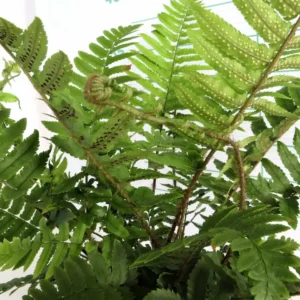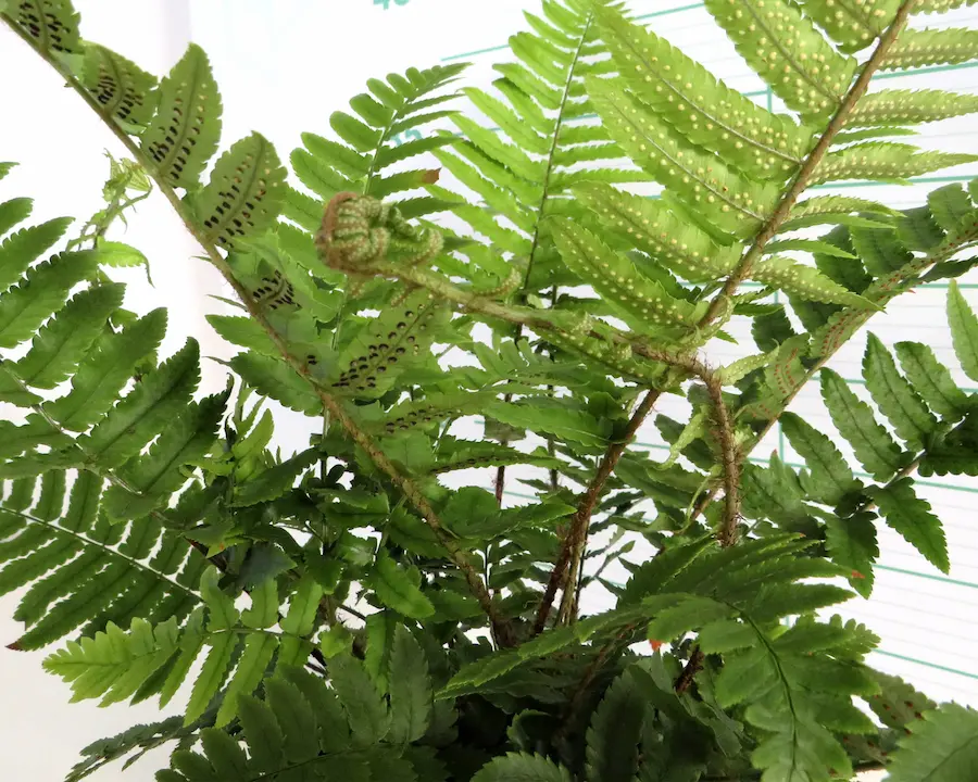 Existen joyas como el Dryopteris ‘Cristata The King’, que presenta las puntas de sus frondas «crestadas» como pequeñas coronas, o el Dryopteris atrata, con sus tallos oscuros, casi negros, que crean un contraste dramático con el verde brillante.