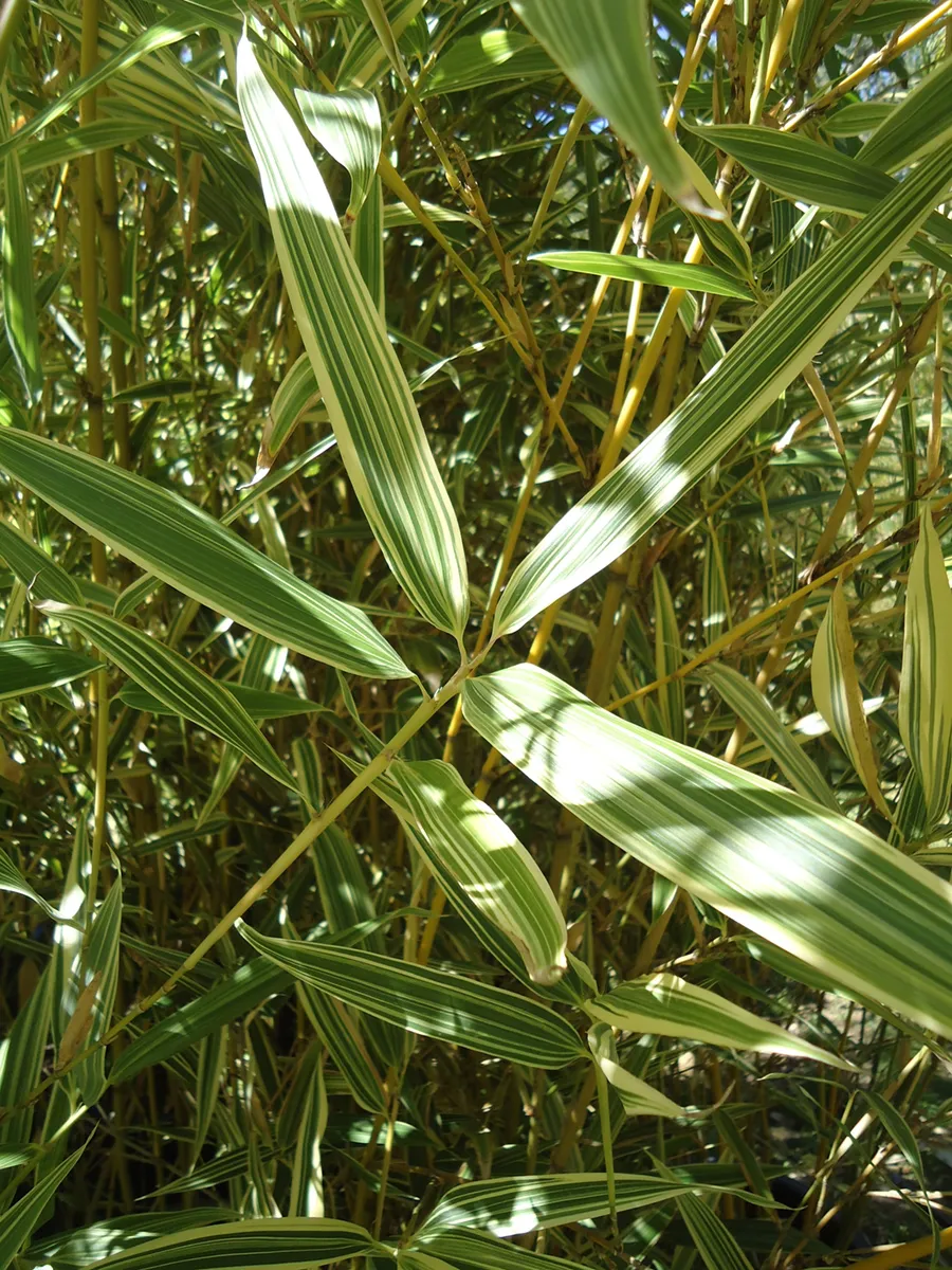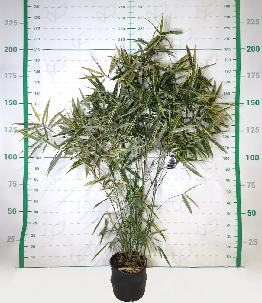 Es la planta definitiva para aclarar rincones oscuros. Su follaje denso y sus colores claros reflejan la luz, creando un punto focal magnético. Aunque es un bambú vigoroso y muy resistente, su crecimiento es algo más compacto que los Phyllostachys gigantes, lo que lo hace muy manejable si se toman las precauciones adecuadas.