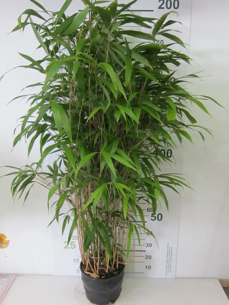 Esta característica hace que forme paredes vegetales impenetrables a la vista y al viento. Su aspecto es más tropical y frondoso, creando una sensación de «selva» inmediata. Además, es uno de los pocos bambúes que funciona igual de bien a pleno sol que en sombra profunda.
