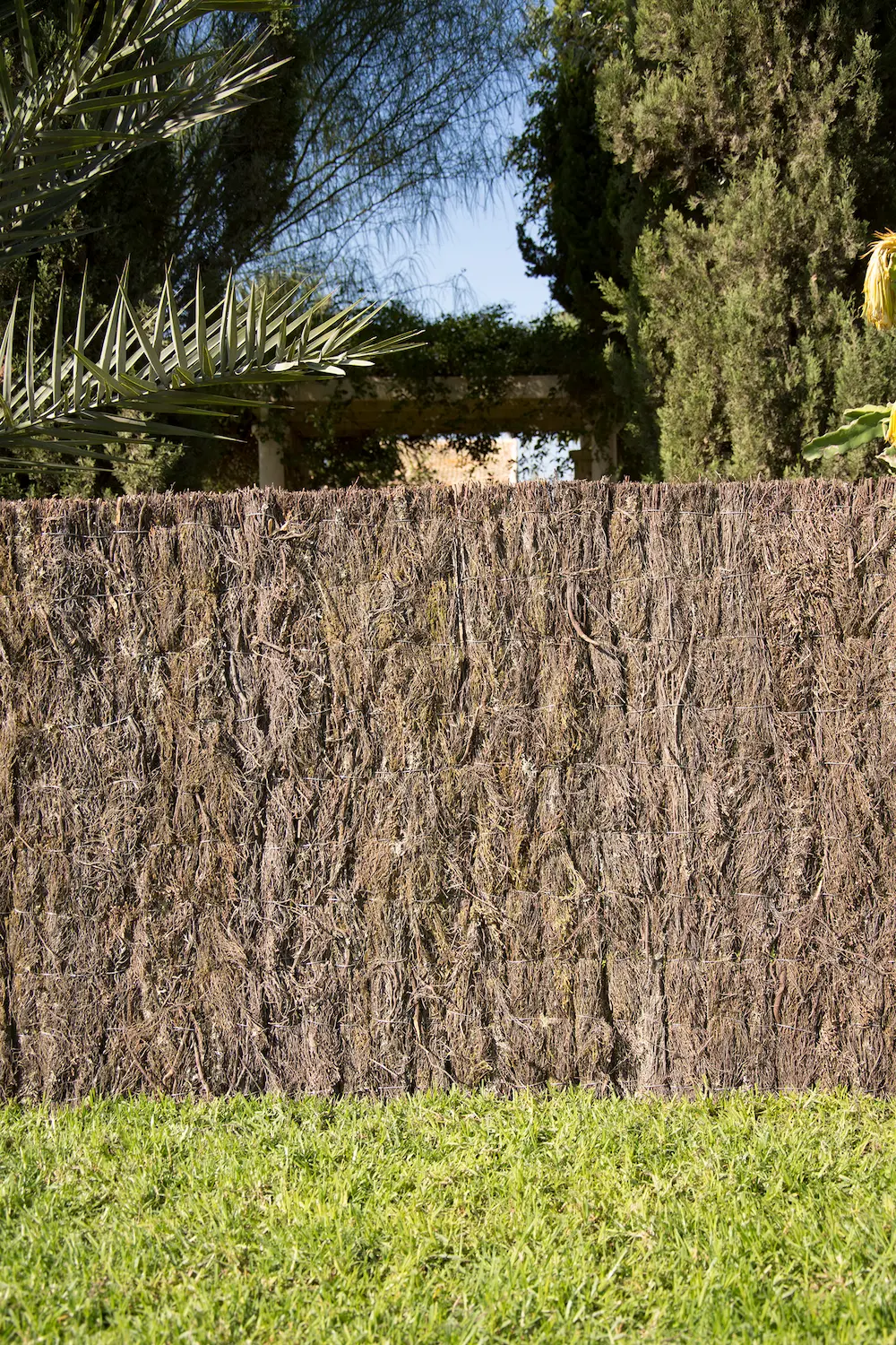 Es la solución favorita en las urbanizaciones de la zona norte y noroeste de Madrid para forrar vallas perimetrales, ya que ofrece un aspecto rústico, natural y una resistencia al sol muy superior a las mallas de plástico.