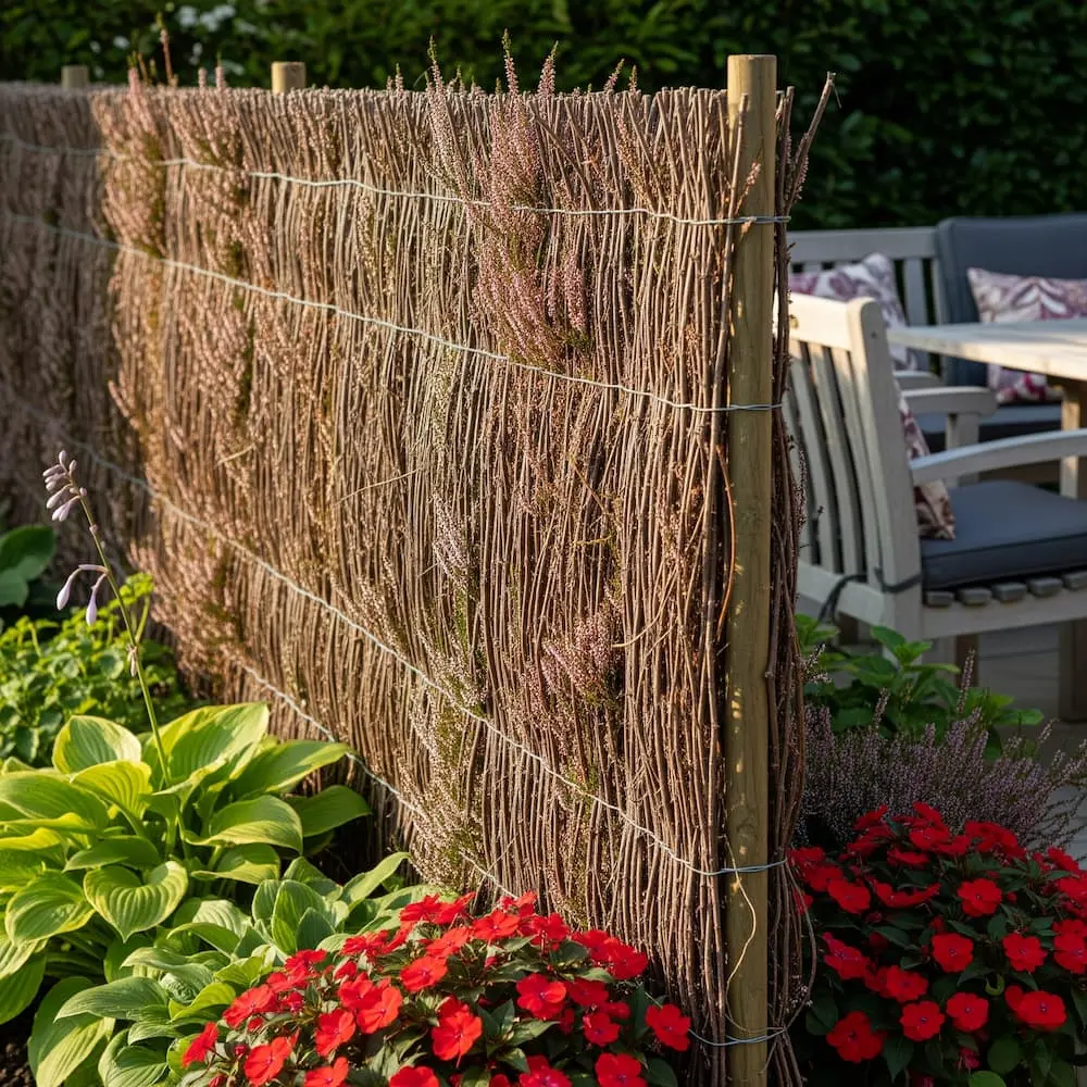 Cuando te decides a comprar Brezo Nacional Madrid en nuestro vivero, estás invirtiendo en privacidad real. A diferencia de los rollos de importación finos que transparentan, nuestro brezo es de recolección nacional (recién cortado), tejido con un espesor de alta densidad que garantiza una ocultación visual prácticamente del 100%.