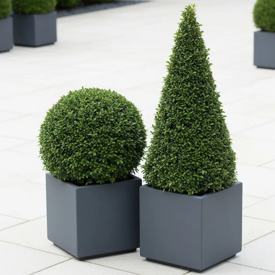 - Estética Clásica: Mantiene el mismo aspecto denso, ordenado y verde oscuro que el boj tradicional.