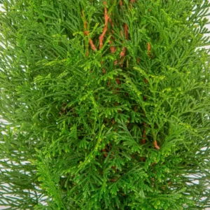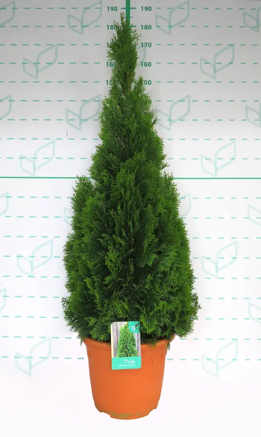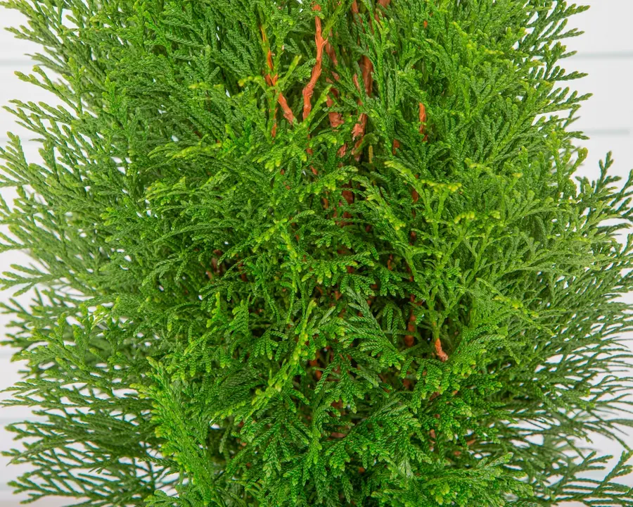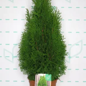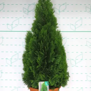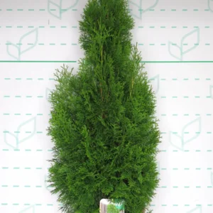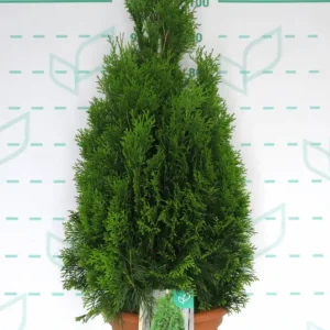A diferencia del ciprés de Leyland, su crecimiento es más moderado y controlado, pero su resultado es de una calidad visual muy superior. Su follaje, compuesto por finas ramillas aplanadas, es de un vibrante y profundo color verde esmeralda que, a diferencia de otras tuyas, mantiene su intensidad y no amarillea durante los fríos del invierno. Es la planta ideal para crear pantallas de privacidad formales, para flanquear una entrada con una simetría perfecta o como ejemplar solitario y escultural en el jardín.