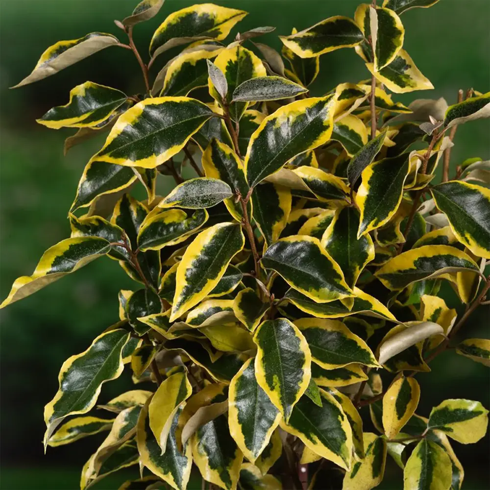 Su principal atractivo es el follaje verde oliva rematado con un amplio y brillante margen dorado que se mantiene estable durante todo el año. Este efecto de color lo convierte en un punto focal constante en el jardín.