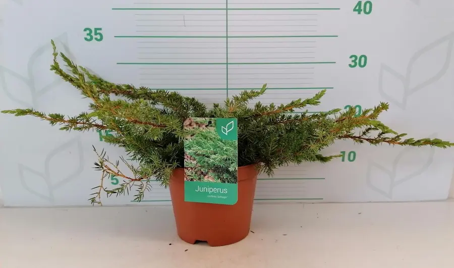A diferencia de los tonos azulados o grisáceos de otros enebros de secano, ‘Schlager’ ofrece un verde brillante y lleno de vida. Su follaje, compuesto por agujas finas y suaves, crea una alfombra de textura mullida y muy ornamental, ideal para cubrir el suelo bajo rosales o arbustos de mayor porte.