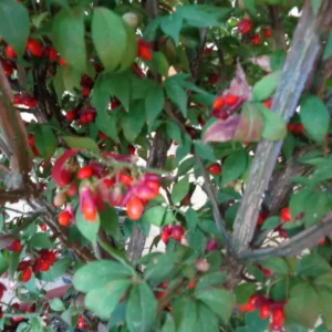 - Frutos: Produce pequeños frutos rosados en otoño (atractivos para los pájaros).