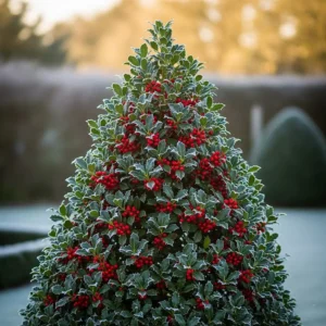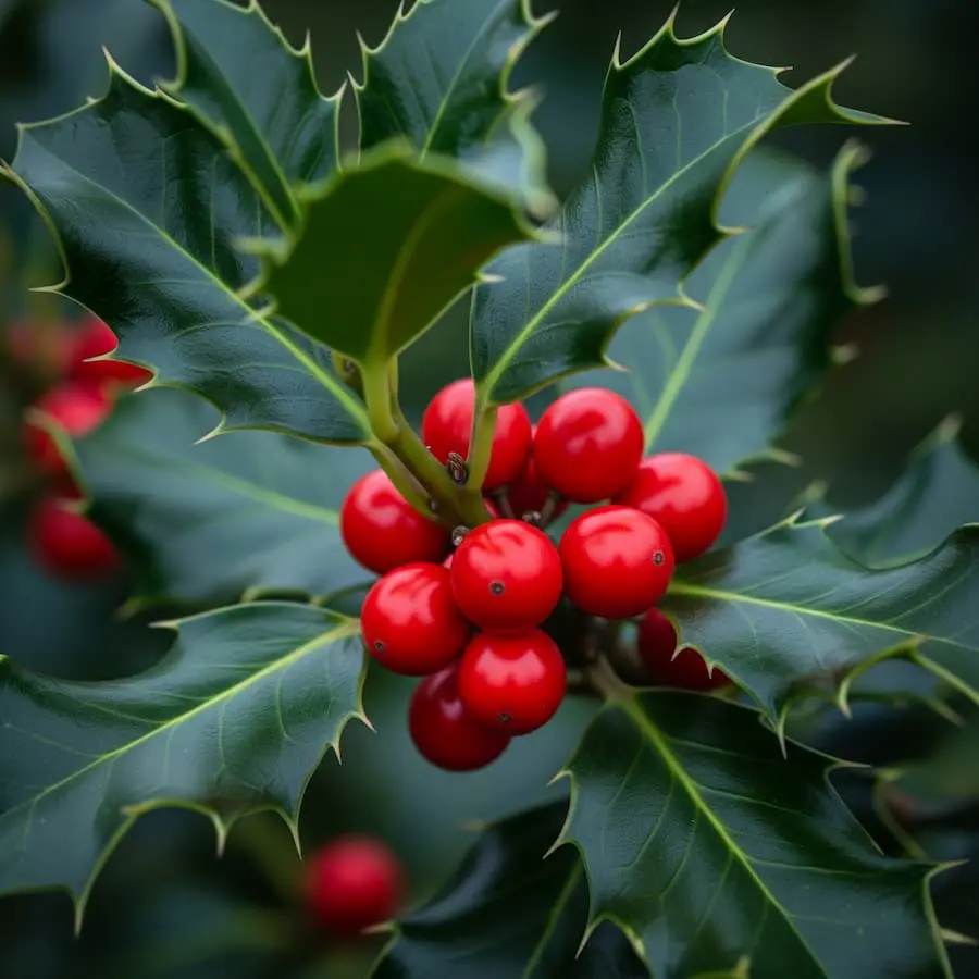 El Acebo es el protagonista indiscutible del jardín en los meses fríos. Sus hojas lustrosas, que parecen barnizadas, reflejan la escasa luz del invierno, y sus espinas lo convierten en un excelente seto defensivo. Pero su verdadera joya son las famosas bayas rojas, que aparecen en otoño y duran todo el invierno, creando un espectáculo de color sin igual y sirviendo de alimento vital para los pájaros.