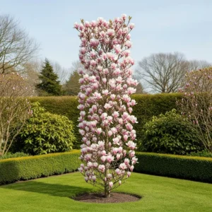 Su característica funcional. Crece de forma estrecha y erguida, lo que la hace perfecta para plantar cerca de muros, pasillos o en jardines donde el espacio lateral es escaso.