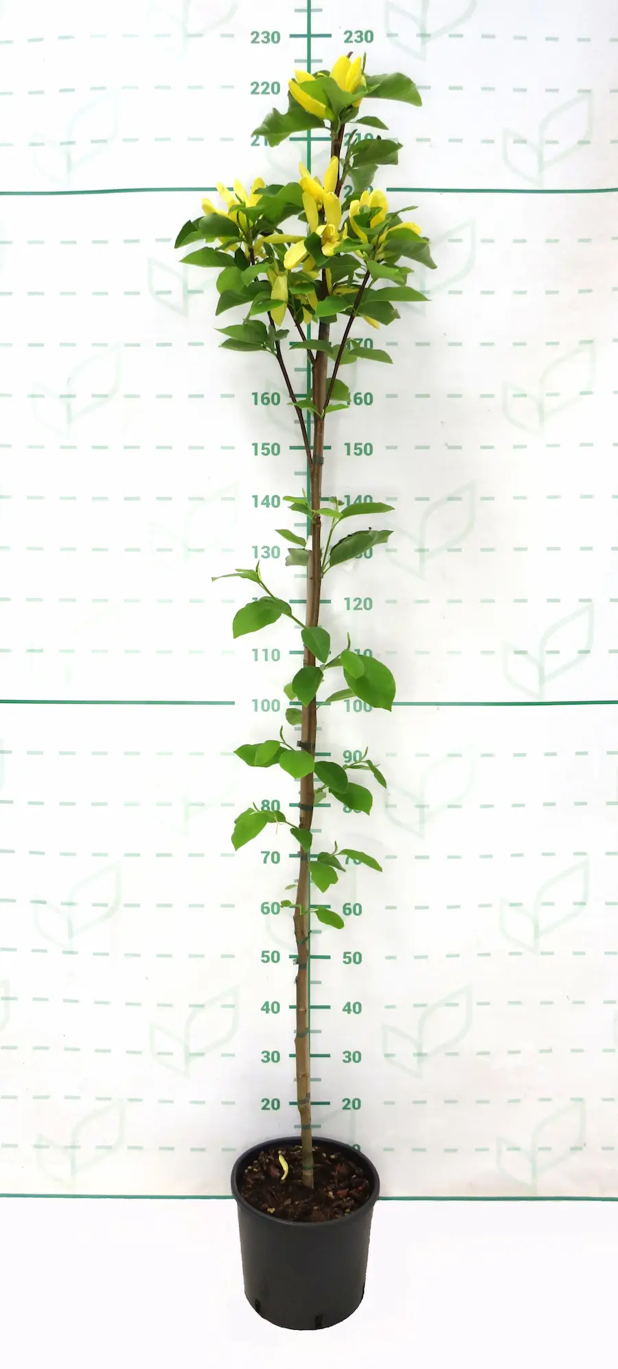 La Magnolia ‘Daphne’ es una de las variedades más buscadas dentro de las Magnolias híbridas de flor amarilla. A diferencia de otras amarillas que palidecen con el sol o el tiempo, ‘Daphne’ mantiene un tono amarillo canario intenso y profundo.