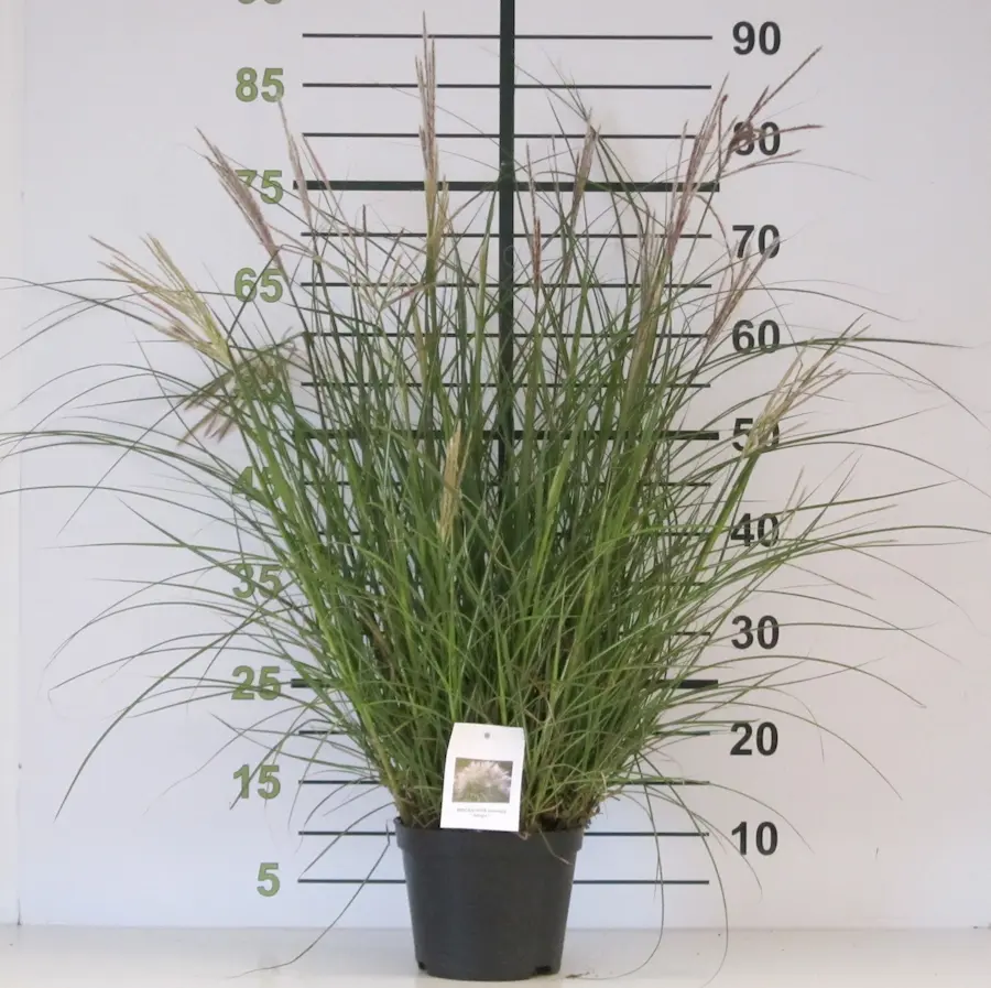 Estas gramíneas de estación cálida forman matas imponentes, con un porte generalmente arqueado y en forma de fuente. Durante el verano, desarrollan un follaje denso y atractivo, pero es a finales de la estación cuando revelan su verdadera gloria. De la mata emergen altos tallos coronados por espectaculares inflorescencias en forma de plumeros sedosos, que capturan la luz del atardecer de una forma mágica. Estas plumas, junto con el follaje, persisten secas durante todo el invierno, creando siluetas inolvidables.