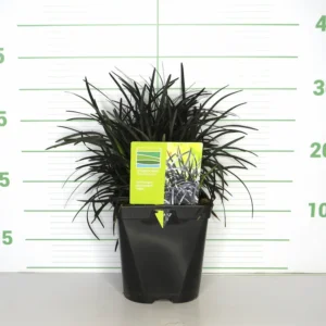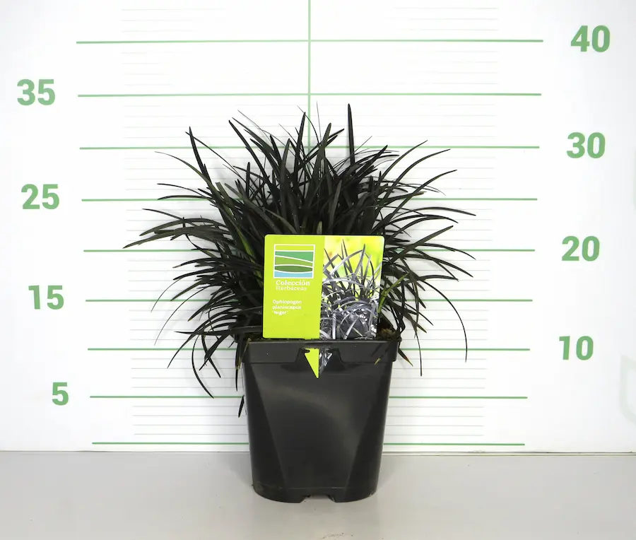 Esta pequeña vivaz de aspecto graminiforme crece lentamente, formando densas matas de hojas acintadas y arqueadas. A pesar de su apariencia delicada, es una planta sorprendentemente resistente y de bajo mantenimiento. A finales del verano, añade un toque de magia a su oscuro follaje con la aparición de pequeñas flores de color lila pálido o blanco, que dan paso a lustrosas bayas negras, creando un espectáculo monocromático de gran belleza.