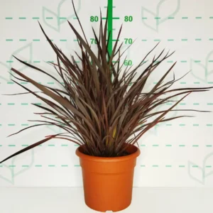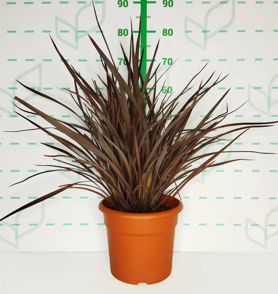El Phormium ‘Amazing Red’ es una de las variedades más buscadas por paisajistas y diseñadores. Su valor no reside en el variegado, sino en la saturación y profundidad de su color: un rojo-bronce oscuro, casi granate, que se mantiene estable durante las cuatro estaciones.
