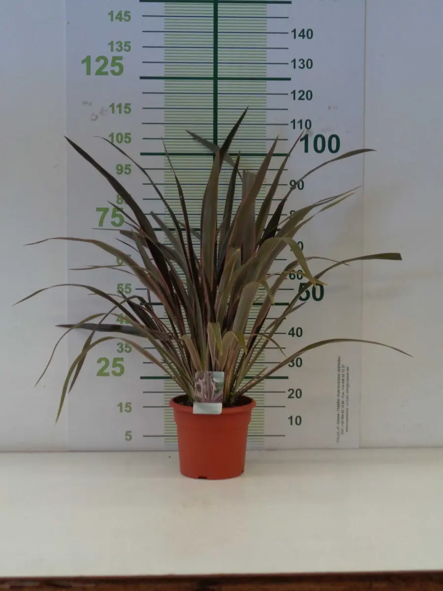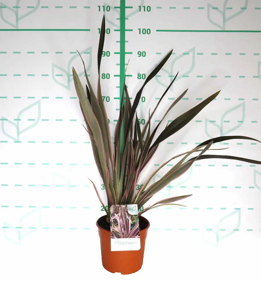 Es una planta de gran tamaño, con hojas erguidas que se arquean ligeramente en las puntas, creando una silueta majestuosa. Aporta la presencia vertical de un Formio grande, pero con un toque de color único.