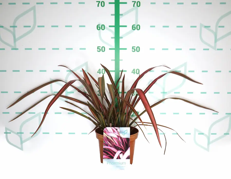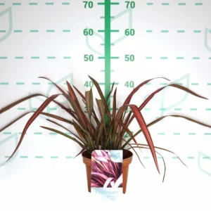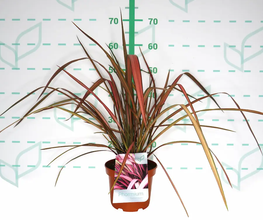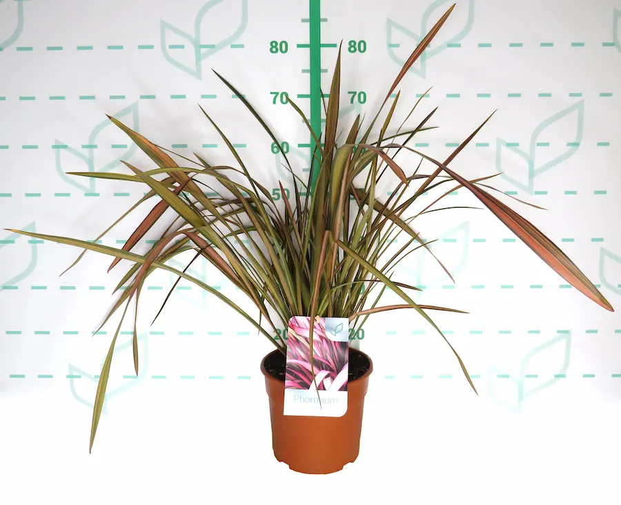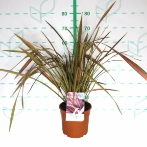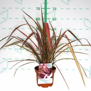 La Phormium ‘Rainbow Maiden’ (Doncella Arcoíris) es una variedad que destaca por su elegancia fluida. A diferencia de los formios más rígidos y verticales, ‘Rainbow Maiden’ tiene un porte claramente arqueado, con hojas que se doblan suavemente hacia el suelo, creando un efecto de «fuente».