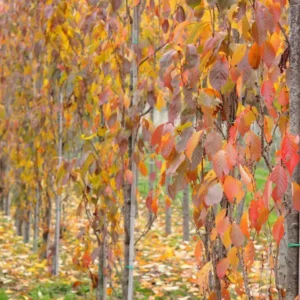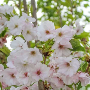 A mediados de la primavera, ‘Amanogawa’ ofrece una floración verdaderamente celestial. Sus ramas verticales se cubren por completo de ramilletes de flores grandes, semi-dobles, de un delicado color rosa pálido que se va aclarando hasta el blanco. Además de su belleza, las flores desprenden una ligera y agradable fragancia a almendra. Su follaje caduco emerge con tonos bronceados, madura a un verde intenso en verano y se despide con bonitos tonos anaranjados y rojos en otoño.
